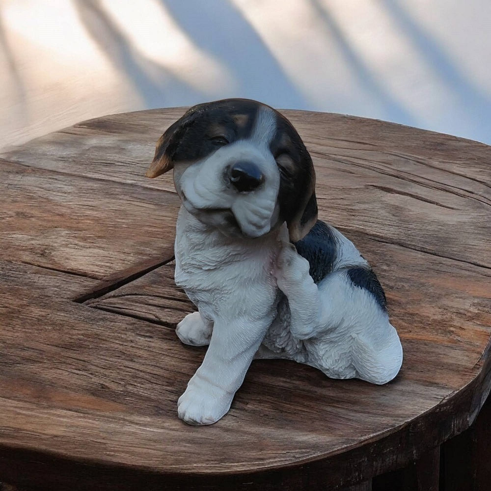 Denne skønne hundehvalp er bare så sød og skøn. Den klør sig lidt på halsen.